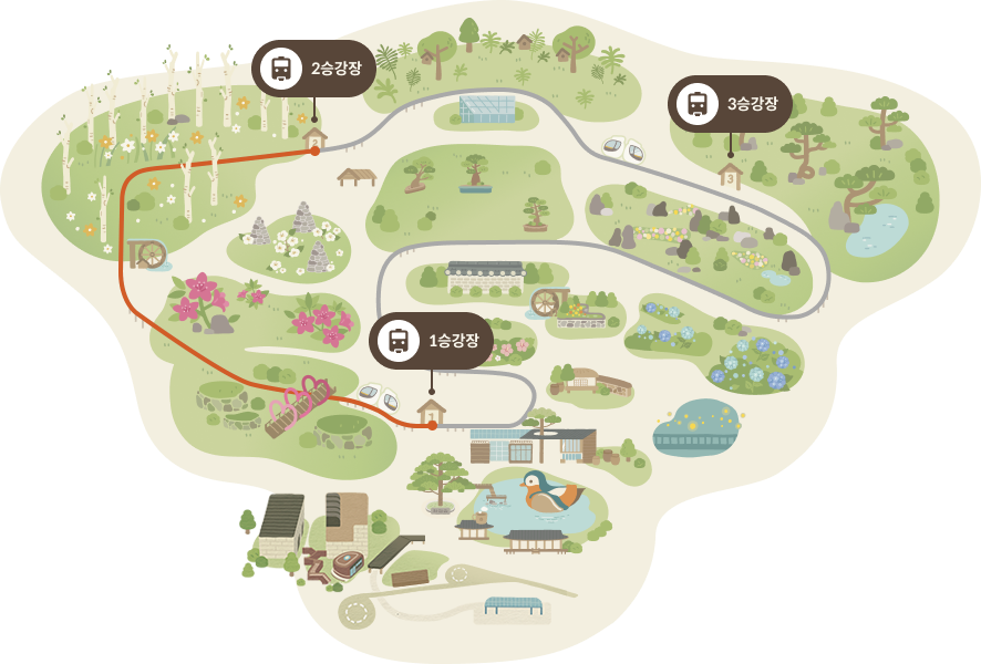 곤지암 화담숲 모노레일은 총 3개의 승강장으로 구성되어 있으며, 편도 또는 왕복 이용이 가능하다. 모노레일을 타고 3구간까지 올라간 후 천천히 걸어 내려오는 코스를 추천한다. 이렇게 하면 체력 소모를 줄이면서도 화담숲의 주요 볼거리를 모두 감상할 수 있다.