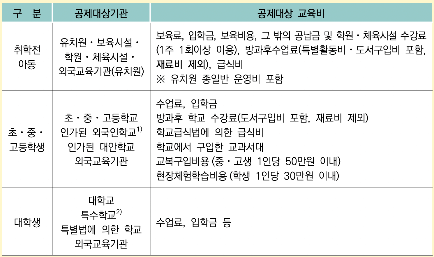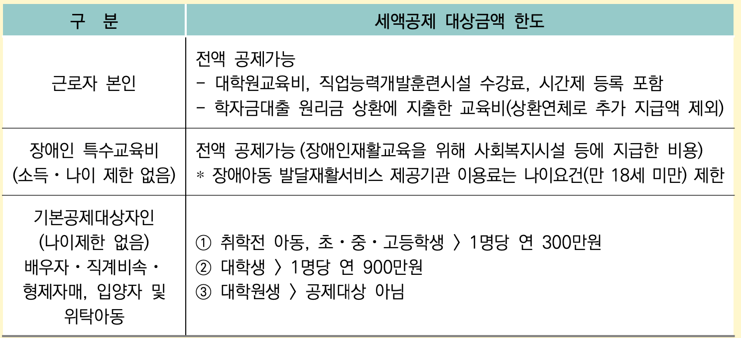 3. 교육기관별 교육비 공제 범위
