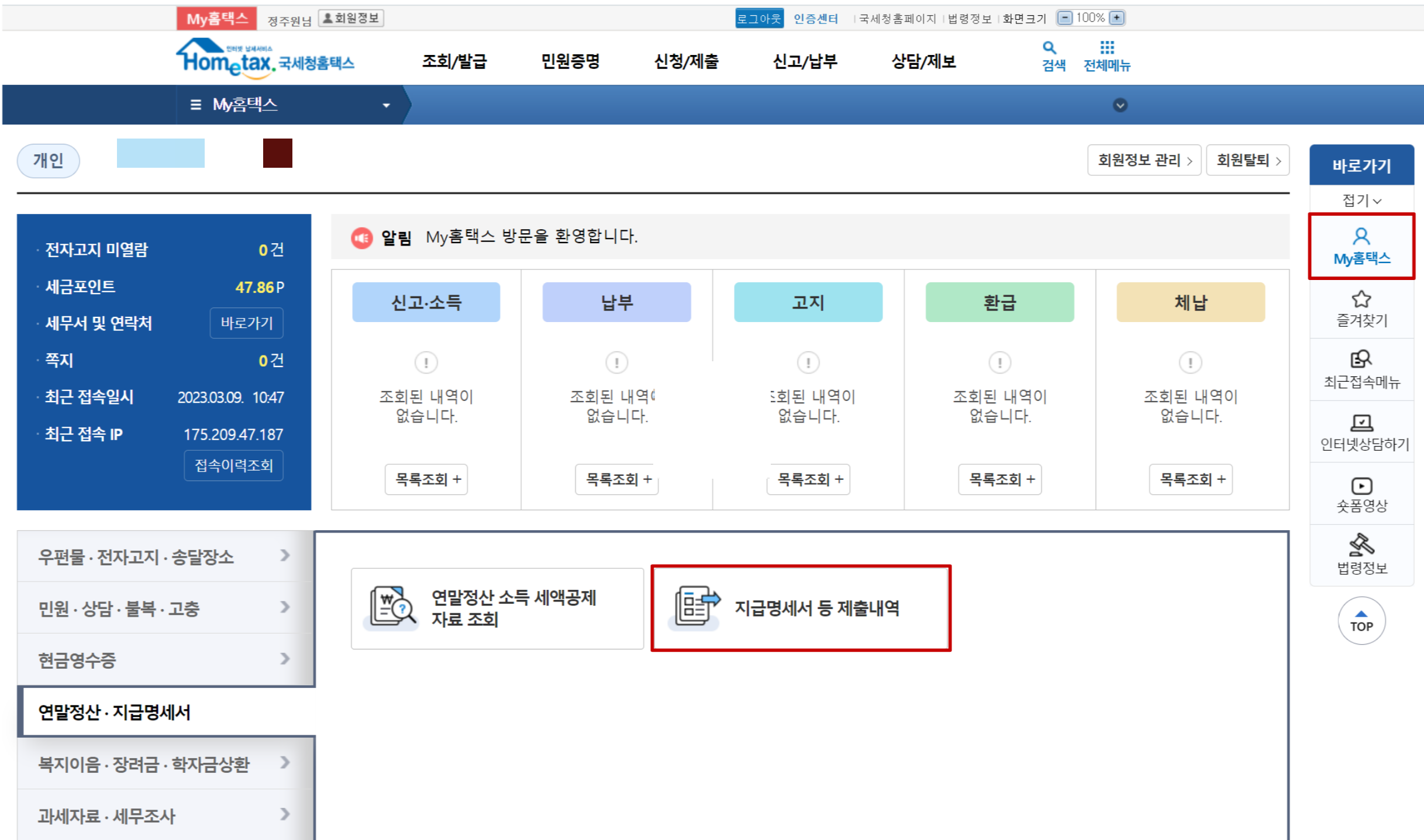 - My 홈택스 메뉴 접속