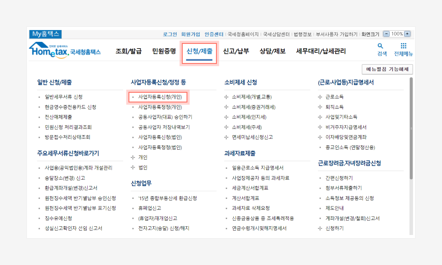 국세청 홈택스 바로가기