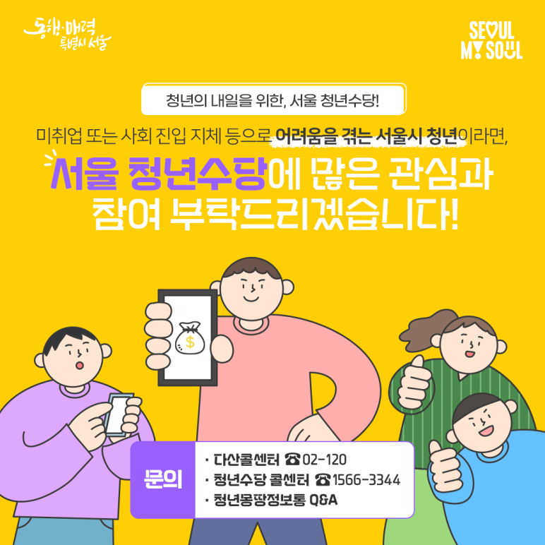 서울시 청년수당 콜센터(1566-3344)나 다산콜센터(120)를 통해 상세한 상담을 받으실 수 있습니다. 청년들의 더 나은 미래를 위한 소중한 기회, 놓치지 마세요!