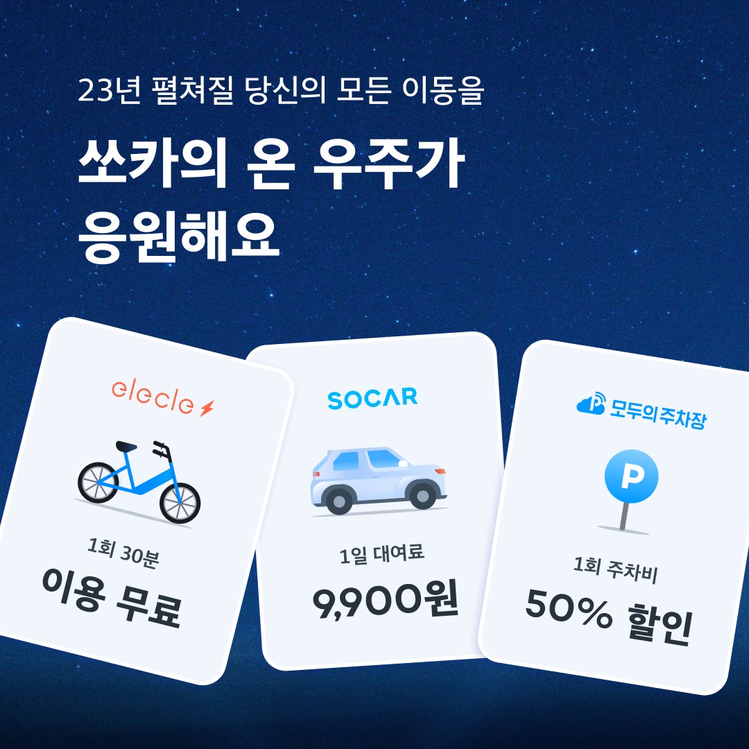 - 할인 이벤트 활용: 쏘카는 정기적으로 특정 지역이나 시간대별 할인 이벤트를 진행합니다.