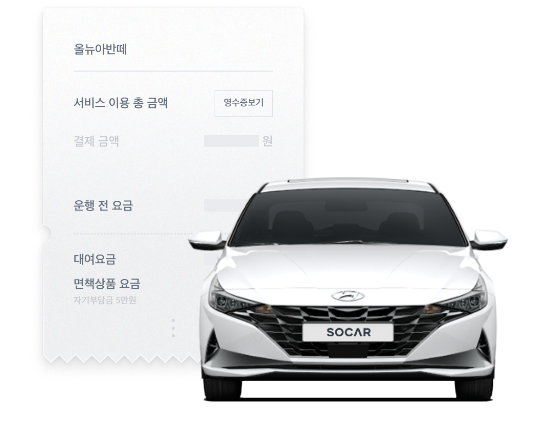 보험료, 청소비, 카시트 등 추가 옵션에 따라 부가 요금이 발생할 수 있습니다. 모든 요금은 예약 시 미리 확인할 수 있으며, 투명한 정산 시스템으로 이용 후 상세 내역을 확인할 수 있습니다.