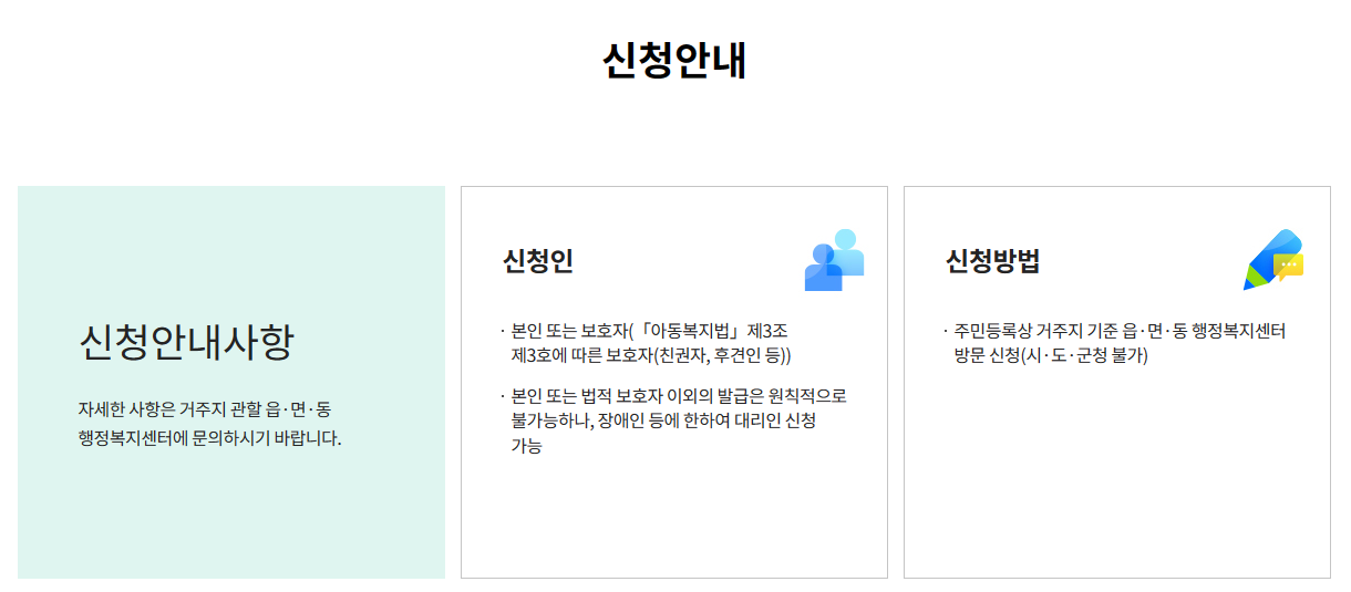 - 주민등록상 거주지의 읍·면·동 행정복지센터 방문