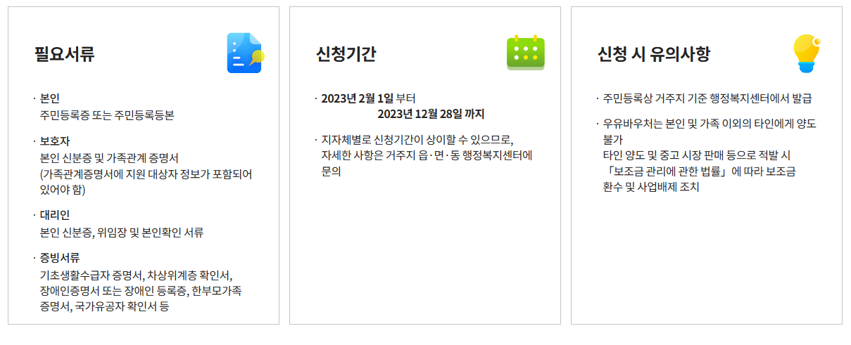 - 월 15,000원 상당의 우유 및 유제품 구매 지원