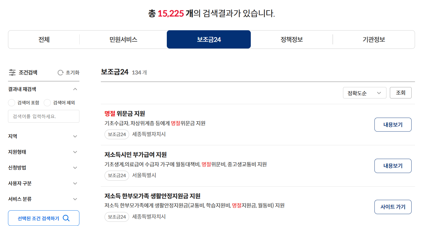 - 지자체 공식 홈페이지: '공지사항', '복지', '지원사업' 등의 메뉴에서 '추석' 또는 '명절' 키워드로 검색