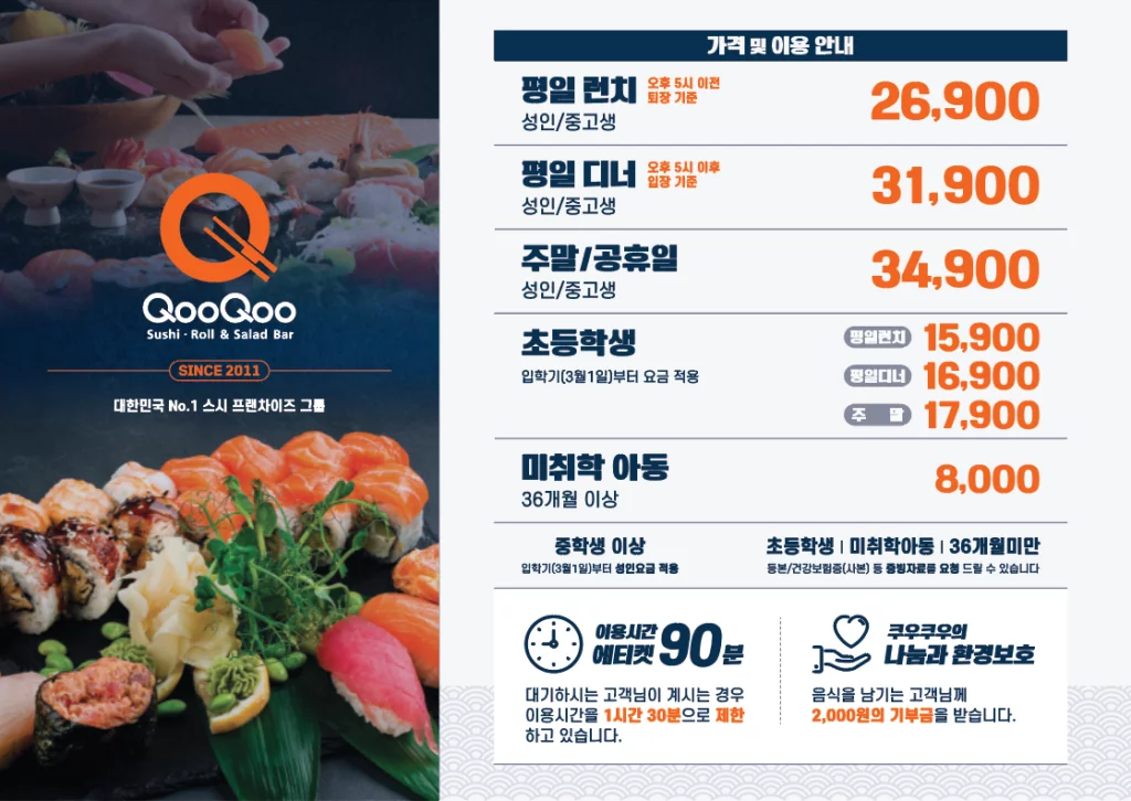 쿠우쿠우 가격은 주말과 평일, 그리고 런치와 디너 시간대에 따라 다릅니다. 2024년 기준으로 가격을 살펴보겠습니다.