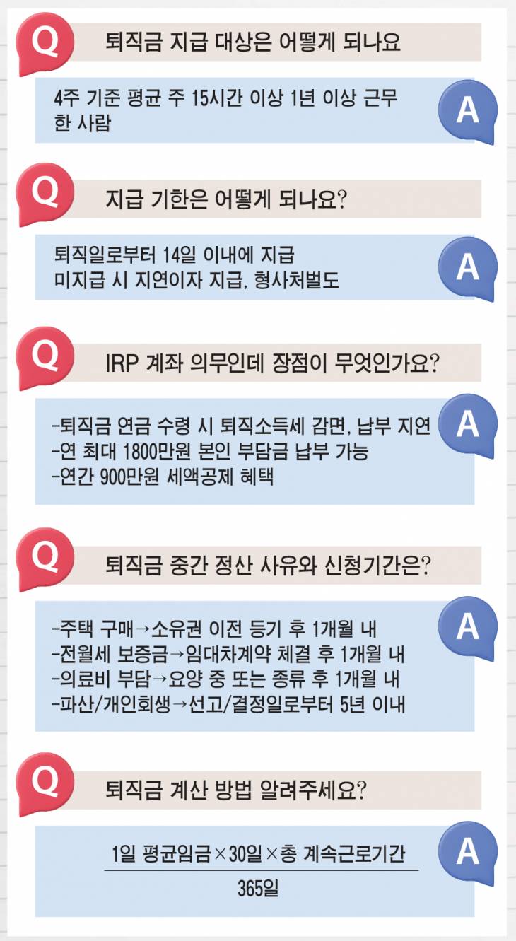 퇴직금 지급은 근로자퇴직급여 보장법에 의해 규정되어 있습니다. 이 법에 따라 1년 이상 근무한 근로자는 퇴직 시 퇴직금을 받을 권리가 있습니다. 퇴직금 계산 시 이러한 법적 근거를 잘 이해하는 것이 중요합니다.
