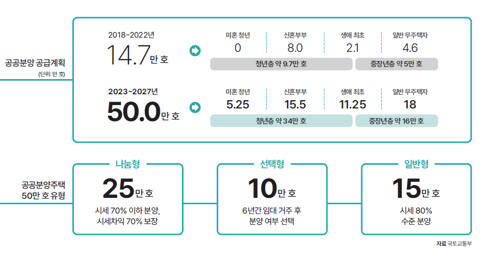 정부는 작년부터 향후 5년간 총 5만 2천 500호의 공공분양 주택을 공급할 계획을 발표했습니다. 이는 이전에 비해 크게 증가한 물량으로, 더 많은 사람들에게 내 집 마련의 기회를 제공할 것으로 예상됩니다.