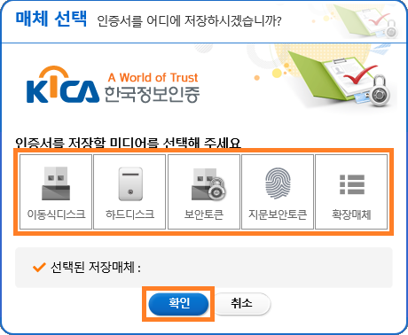 1. 인증서 저장 위치 선택 (하드디스크, USB 등)