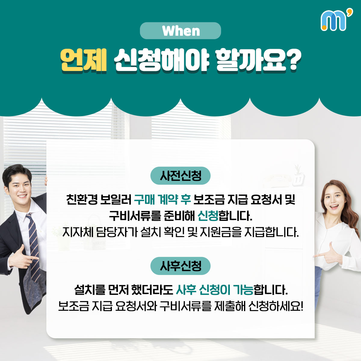 - 거주 지역 지자체 홈페이지에서 '친환경 보일러 지원' 공고 확인